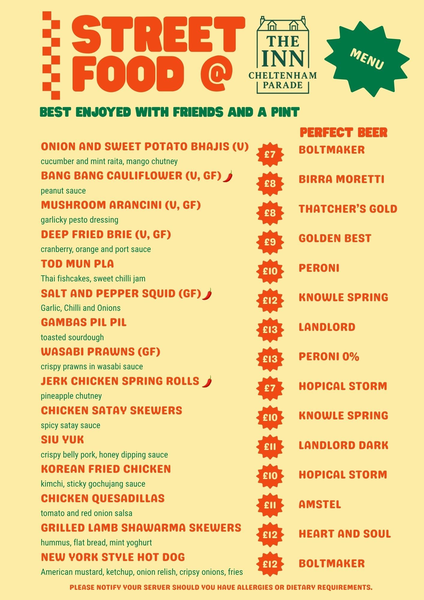 At The Inn, food is at the heart of everything we do. Our kitchen celebrates honest cooking and bold flavours — from comforting British pub classics to vibrant street food plates inspired by cuisines from around the world.